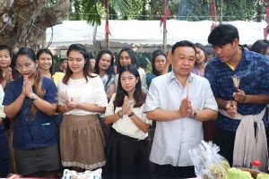 ข่าวจากหน่วยงานภายใน งานประเพณีแซนโฎนตา บูชาบรรพบุรุษ ประจำปี 2562 ผู้เขียน คณะครุศาสตร์ 24 กันยายน, 2019 ผู้เขียน คณะครุศาสตร์ 24 กันยายน, 2019 634 วันนี้ (23 กันยายน) เวลา 14.00 น. ณ ศาลตายายประจำมหาวิทยาลัยราชภัฏสุรินทร์ มหาวิทยาลัยราชภัฏสุรินทร์จัดงานประเพณีแซนโฎนตา บูชาบรรพบุรุษ ประจำปี 2562 เพื่อเป็นการรำลึกและอุทิศส่วนกุศลให้แก่บรรพบุรุษผู้ล่วงลับ พร้อมทั้งเป็นการอนุรักษ์ดำรงรักษาและสืบทอดวิถีปฏิบัติประเพณีแซนโฎนตาของชาวสุรินทร์เชื้อสายเขมรที่มีมาตั้งแต่โบราณ โดยมีผู้ช่วยศาสตราจารย์กนก โตสุรัตน์ ปฏิบัติหน้าที่อธิการบดีมหาวิทยาลัยราชภัฏสุรินทร์ เป็นประธานในพิธี พร้อมคณะผู้บริหาร คณาจารย์ บุคลากร และนักศึกษา ร่วมนำเครื่องจูน เครื่องแซน เพื่อมาประกอบพิธี ซึ่งในงานมีการประกอบพิธีสงฆ์ พิธีบวงสรวงแซนโฎนตา และพิธีแซนโฎนตา ทั้งนี้ นางอุดมลักษณ์ ปทุมรัตน์ วัฒนธรรมจังหวัดสุรินทร์ นางสาวอรุณี แซ่เล้า หัวหน้าพิพิธภัณฑสถานแห่งชาติสุรินทร์ นางสาวธมลวรรณ เจริญวงศ์พิสิษฐ์ ผู้อำนวยการ ททท. สำนักงานสุรินทร์ และอาจารย์สำรวม ดีสม (น้ำผึ้ง เมืองสุรินทร์) ได้ให้เกียรติเข้าร่วมงานของมหาวิทยาลัยในครั้งนี้ด้วย Cr.ประชาสัมพันธ์มหาวิทยาลัยราชภัฏสุรินทร์ 60 comments ก่อนหน้า โครงการเผยแพร่ความรู้การทำนุบำรุงศิลปะและวัฒนธรรม สืบสานประเพณีแซนโฎนตา คณะครุศาสตร์ มหาวิทยาลัยราชภัฏสุรินทร์ ถัดไป ขอเรียนเชิญผู้บริหาร คณาจารย์ ข้าราชการและบุคลากร เข้าร่วมโครงการประชุมคณาจารย์ข้าราชการและบุคลากร มหาวิทยาลัยราชภัฏสุรินทร์ ข่าวอัพเดท หลักสูตร... 27 มิถุนายน, 2023 ประกาศรา... 26 มิถุนายน, 2023 การประชุ... 15 มิถุนายน, 2023 รายงานเพ... 26 พฤษภาคม, 2023 บรรยากาศ... 25 มีนาคม, 2023 โครงการป... 4 มีนาคม, 2023 คณะครุศา... 1 กุมภาพันธ์, 2023 มหาวิทยา... 22 มกราคม, 2023 พิธีเฉลิ... 11 มกราคม, 2023 การประชุ... 26 ธันวาคม, 2022