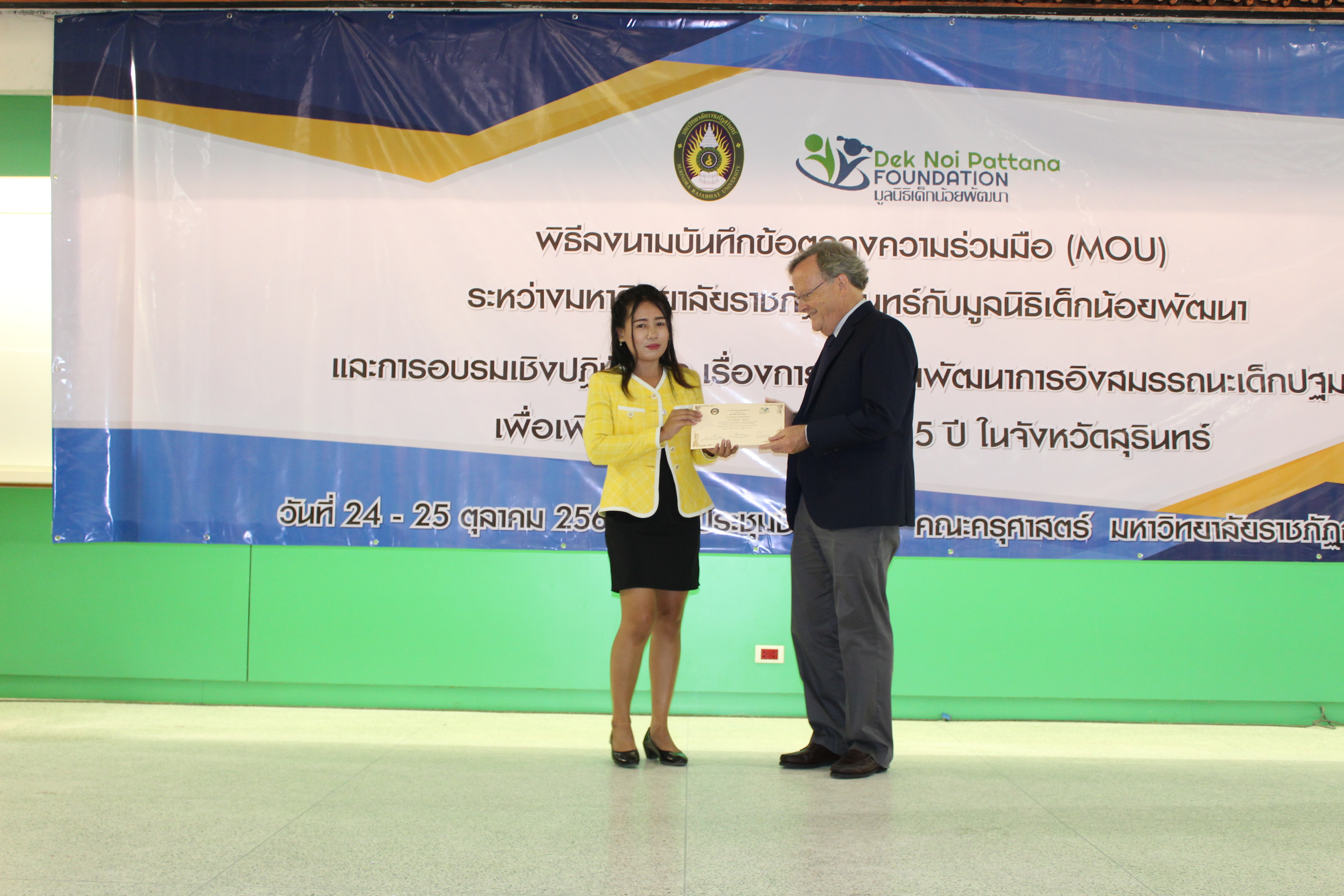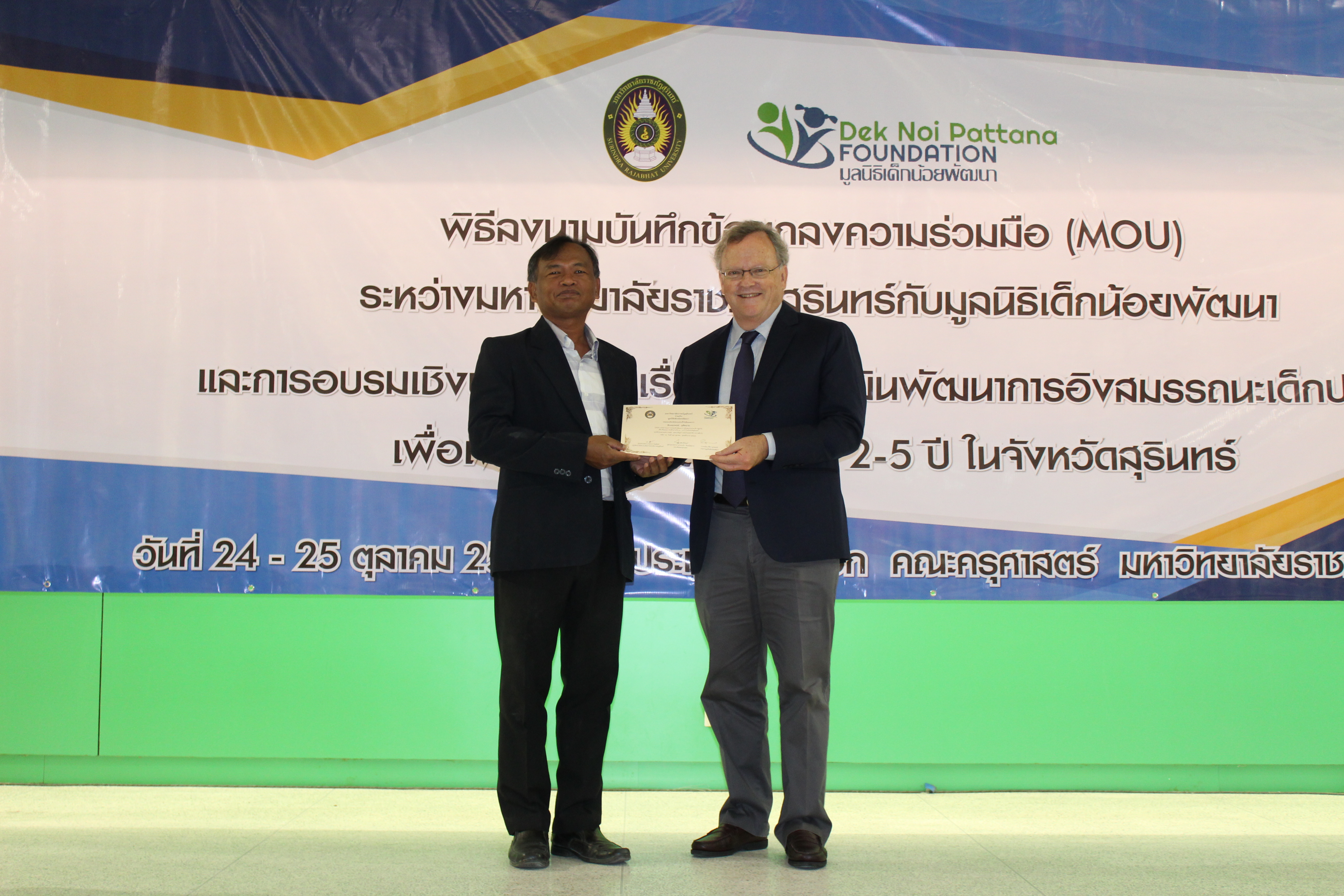 ข่าวจากหน่วยงานภายใน พิธีลงนามบันทึกข้อตกลงความร่วมมือ(MOU) ระหว่างมหาวิทยาลัยราชภัฏสุรินทร์ และมูลนิธิเด็กน้อยพัฒนา ผู้เขียน คณะครุศาสตร์ 24 ตุลาคม, 2019 ผู้เขียน คณะครุศาสตร์ 24 ตุลาคม, 2019 735 วันที่ 24 ตุลาคม 2562 เวลา 09.00 น. พิธีลงนามบันทึกข้อตกลงความร่วมมือ(MOU) ระหว่างมหาวิทยาลัยราชภัฏสุรินทร์ และมูลนิธิเด็กน้อยพัฒนา ณ ห้องประชุมช้างเผือก อาคาร 41 ทั้งนี้ได้รับเกียรติจากผู้ช่วยศาสตราจารย์กนก โตสุรัตน์ ปฏิบัติหน้าที่อธิการบดี มหาวิทยาลัยราชภัฏสุรินทร์ เป็นประธานในพิธี ร่วมบันทึกข้อตกลงความร่วมมือ(MOU) กับ มิสเตอร์เอียน พอร์เตอร์ ผู้อำนวยการมูลนิธิเด็กน้อยพัฒนา เพื่อส่งเสริมพัฒนาเด็กปฐมวัยในช่วงอายุ 2 – 4 ปีที่อยู่ในจังหวัดสุรินทร์ผ่านการอบรมเพื่อเพิ่มพูนทักษะ ความรู้และศักยภาพครู ครูผู้ดูแลเด็ก ผู้ดูแลเด็ก ในศูนย์พัฒนาเด็กเล็กสังกัดองค์การปกครองส่วนท้องถิ่น โดยทั้งสองหน่วยงานตกลง ทำงานร่วมกันในด้านต่างๆ ดังนี้ 1.ร่วมกันพัฒนาโรงเรียนสาธิต ระดับปฐมวัย คณะครุศาสตร์ มหาวิทยาลัยราชภัฏสุรินทร์ เพื่อยกระดับศักยภาพการจัดการเรียนการสอนสู่การเป็นศูนย์เรียนรู้ต้นแบบ 2.ร่วมกันให้การอบรมเพื่อเพิ่มพูนทักษะ ความรู้และศักยภาพครู ครูผู้ดูแลเด็ก ผู้ดูแลเด็ก ในศูนย์พัฒนาเด็กเล็กสังกัดองค์การปกครองส่วนท้องถิ่น จังหวัดสุรินทร์ ตามคำร้องขออย่างเป็นลายลักษณ์อักษรจากองค์การยริหารส่วนตำบล ในสังกัดองค์การปกครองส่วนท้องถิ่นจังหวัดสุรินทร์ 3.ร่วมกันนิเทศการสอนครู ครูผู้ดูแลเด็ก ผู้ดูแลเด็ก ในศูนย์พัฒนาเด็กเล็กสังกัดองค์การปกครองส่วนท้องถิ่น จังหวัดสุรินทร์ ตามคำร้องขออย่างเป็นลายลักษณ์อักษรจากองค์การยริหารส่วนตำบล ในสังกัดองค์การปกครองส่วนท้องถิ่นจังหวัดสุรินทร์ 0 ก่อนหน้า โครงการสัมมนาผลการปฏิบัติการสอนในสถานศึกษา 2 ภาคเรียนที่ 1 ปีการศึกษา 2562 ถัดไป พิธีบำเพ็ญกุศลเนื่องใน “วันปิยมหาราช” ข่าวอัพเดท หลักสูตร... 27 มิถุนายน, 2023 ประกาศรา... 26 มิถุนายน, 2023 การประชุ... 15 มิถุนายน, 2023 รายงานเพ... 26 พฤษภาคม, 2023 บรรยากาศ... 25 มีนาคม, 2023 โครงการป... 4 มีนาคม, 2023 คณะครุศา... 1 กุมภาพันธ์, 2023 มหาวิทยา... 22 มกราคม, 2023 พิธีเฉลิ... 11 มกราคม, 2023 การประชุ... 26 ธันวาคม, 2022
