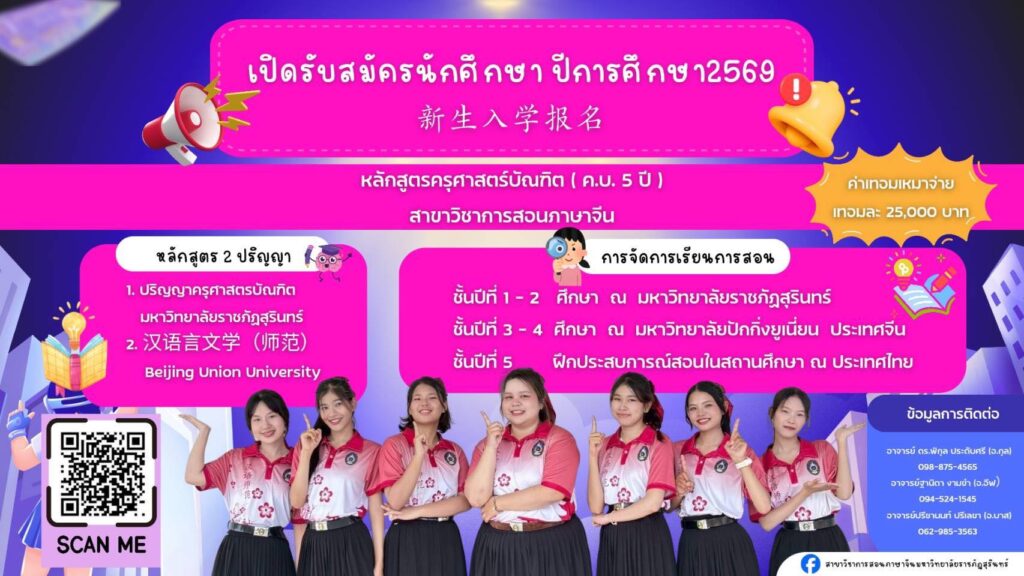 หลักสูตรครุศาสตรบัณฑิต สาขาวิชาการสอนภาษาจีน