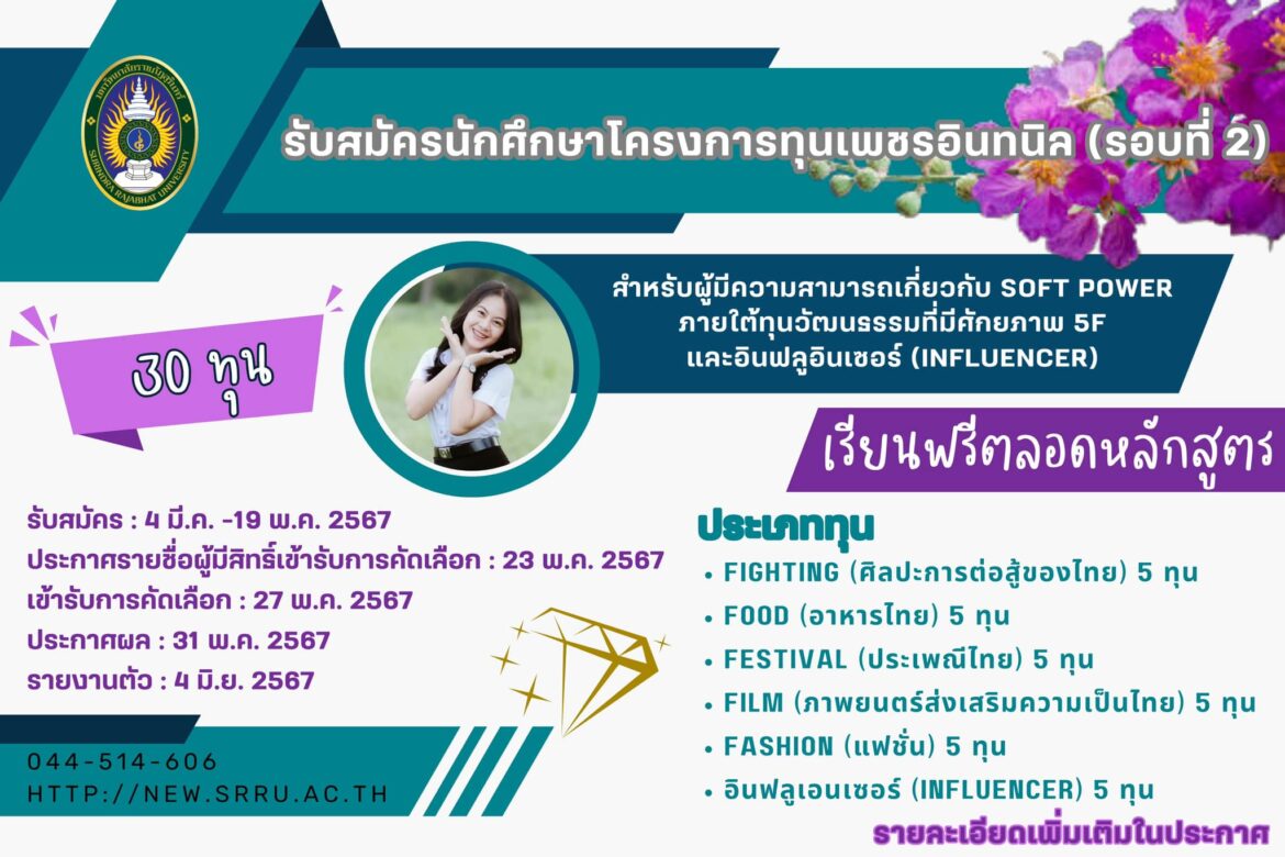 ลิงก์ประกาศรับสมัคร 👉🏻 https://bit.ly/3V5IyNX     ผู้สนใจสามารถสมัครได้ที่ http://new.srru.ac.th/scholarship