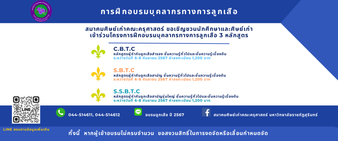 สมาคมศิษย์เก่าคณะครุศาสตร์ ขอเชิญชวนนักศึกษาและศิษย์เก่าเข้าร่วมโครงการฝึกอบรมบุคลากรทางการลูกเสือ 3 หลักสูตร