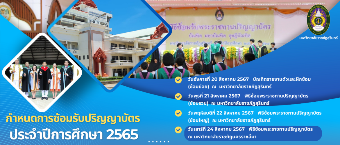 Royal-Graduation-Ceremonyข่าวสารและความเคลื่อนไหวพิธีพระราชทานปริญญาบัตร กำหนดการฝึกซ้อมและพิธีพระราชทานปริญญาบัตร แก่ผู้สำเร็จการศึกษาจากมหาวิทยาลัยราชภัฏสุรินทร์ ประจำปีการศึกษา 2565 ผู้เขียน คณะครุศาสตร์ 19 สิงหาคม, 2024 ผู้เขียน คณะครุศาสตร์ 19 สิงหาคม, 2024 1.6K กำหนดการฝึกซ้อมและพิธีพระราชทานปริญญาบัตร แก่ผู้สำเร็จการศึกษาจากมหาวิทยาลัยราชภัฏสุรินทร์ ประจำปีการศึกษา 2565 ขั้นตอนการรายงานตัวและฝึกซ้อมบัณฑิต พิธีซ้อมรับพระราชทานปริญญาบัตร ผู้สำเร็จการศึกษาจากมหาวิทยาลัยราชภัฏสุรินทร์ ประจำปีการศึกษา 2565 ในวันที่ 20 สิงหาคม 2567 กำหนดการ https://bit.ly/3WQKtFi ขั้นตอนการรับรายงานบัณฑิต https://bit.ly/46MrSPh ตรวจสอบรายชื่อลำดับที่ https://bit.ly/4dGP2IW ข้อมูลข่าวสารแจ้งบัณฑิต http://graduate.srru.ac.th สอบถามรายละเอียดเพิ่มเติม กองพัฒนานักศึกษา สำนักงานอธิการบดี 044-514687 สำนักส่งเสริมวิชาการและงานทะเบียน 044-514606 ฝ่ายประชาสัมพันธ์ 044-710000 กด 0 ติดต่อประชาสัมพันธ์ ก่อนหน้า ขอเรียนเชิญ เข้าร่วมโครงการสัมมนา “แนวโน้มและทิศทางการศึกษาไทยในอนาคต” ถัดไป บรรยากาศการรายงานตัวและฝึกซ้อมย่อย ในพิธีพระราชทานปริญญาบัตร แก่ผู้สำเร็จการศึกษา ประจำปีการศึกษา 2565 ข่าวอัพเดท คณะครุศา... 16 ธันวาคม, 2025 วันที่ 2... 16 พฤศจิกายน, 2025 แนวปฏิบั... 15 พฤศจิกายน, 2025 แบบประเม... 15 พฤศจิกายน, 2025 บรรยากาศ... 15 พฤศจิกายน, 2025 สนามสอบใ... 15 พฤศจิกายน, 2025 คณะครุศา... 6 ตุลาคม, 2025 คณะครุศา... 6 ตุลาคม, 2025 มอบทุนกา... 21 สิงหาคม, 2025 สำนักงาน... 13 สิงหาคม, 2025