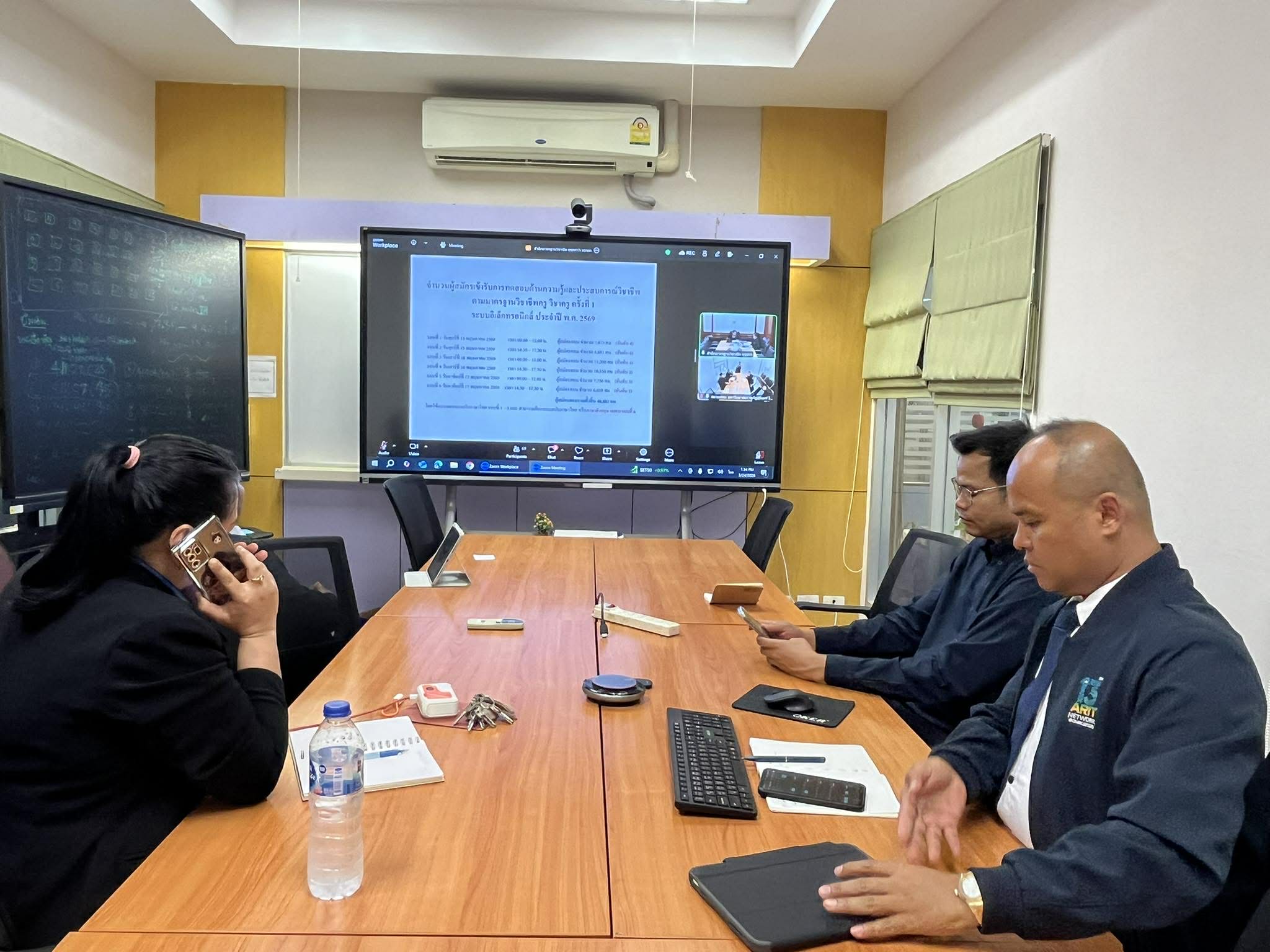 ข่าวสารและความเคลื่อนไหวสนามสอบใบประกอบวิชาชีพครู ประชุมเพื่อรับการชี้แจงแนวทางการทดสอบและประเมินสมรรถนะทางวิชาชีพครู (วิชาครู) ครั้งที่ 1 ด้วยระบบออนไลน์ผ่านโปรแกรม Zoom ผู้เขียน คณะครุศาสตร์ 26 มีนาคม, 2026 ผู้เขียน คณะครุศาสตร์ 26 มีนาคม, 2026 9 วันที่ 24 มีนาคม 2569 เวลา 13.30 น. คณะครุศาสตร์ร่วมกับสำนักวิทยบริการและเทคโนโลยีสารสนเทศ เข้าร่วมการประชุมเพื่อรับการชี้แจงแนวทางการทดสอบและประเมินสมรรถนะทางวิชาชีพครู (วิชาครู) ครั้งที่ 1 ด้วยระบบออนไลน์ผ่านโปรแกรม Zoom โดย อาจารย์ ดร.สมเกียรติ เพ็ชรมาก ผู้อำนวยการสำนักวิทยบริการและเทคโนโลยีสารสนเทศ, นายสุภาษิต เติมกล้า รองผู้อำนวยการฯ ฝ่ายเทคโนโลยีสารสนเทศ, อาจารย์ปิยพร สีสันต์ รองคณบดี คณะครุศาสตร์, อาจารย์ ดร นุชจรี บุญเกต อาจารย์ประจำคณะครุศาสตร์, นายคงคม สืบสิทธิ์ หัวหน้าฝ่ายงานวิชาการ และนายคณภัทร พวงจินดา นักวิชาการคอมพิวเตอร์ ซึ่งจะดำเนินการการทดสอบและประเมินสมรรถนะทางวิชาชีพครู (วิชาครู) ในระหว่างวันที่ 15 – 17 พฤษภาคม 2569 ณ สนามสอบมหาวิทยาลัยราชภัฏสุรินทร์ จำนวน 1,866 ที่นั่ง โดยมีรายชื่อผู้แทนสนามสอบมหาวิทยาลัยราชภัฏสุรินทร์ เข้าร่วมประชุม ดังนี้ 1) อาจารย์ ดร.สมเกียรติ เพ็ชรมาก ผู้อำนวยการสำนักวิทยบริการฯ 2) นายสุภาษิต เติมกล้า รองผู้อำนวยการสำนักวิทยบริการฯ ฝ่ายเทคโนโลยีสารสนเทศ 3) อาจารย์ปิยพร สีสันต์ รองคณบดี คณะครุศาสตร์ 4) อาจารย์ ดร นุชจรี บุญเกต อาจารย์ประจำคณะครุศาสตร์ 5) นายคงคม สืบสิทธิ์ หัวหน้าฝ่ายงานวิชาการ คณะครุศาสตร์ 0 ก่อนหน้า ARIT Connect เชื่อมโยงความรู้ เพื่อแลกเปลี่ยนความคิดเห็นและรับฟังข้อเสนอแนะในการพัฒนาการให้บริการด้านวิชาการและเทคโนโลยีสารสนเทศ ข่าวอัพเดท ARIT Con... 23 มีนาคม, 2026 โครงการพ... 23 มีนาคม, 2026 ประกาศรา... 5 มีนาคม, 2026 คุรุสภาเ... 27 กุมภาพันธ์, 2026 เตรียมคว... 27 กุมภาพันธ์, 2026 กิจกรรมส... 19 กุมภาพันธ์, 2026 รายงานกา... 18 กุมภาพันธ์, 2026 ขอแสดงคว... 17 กุมภาพันธ์, 2026 ขอแสดงคว... 17 กุมภาพันธ์, 2026