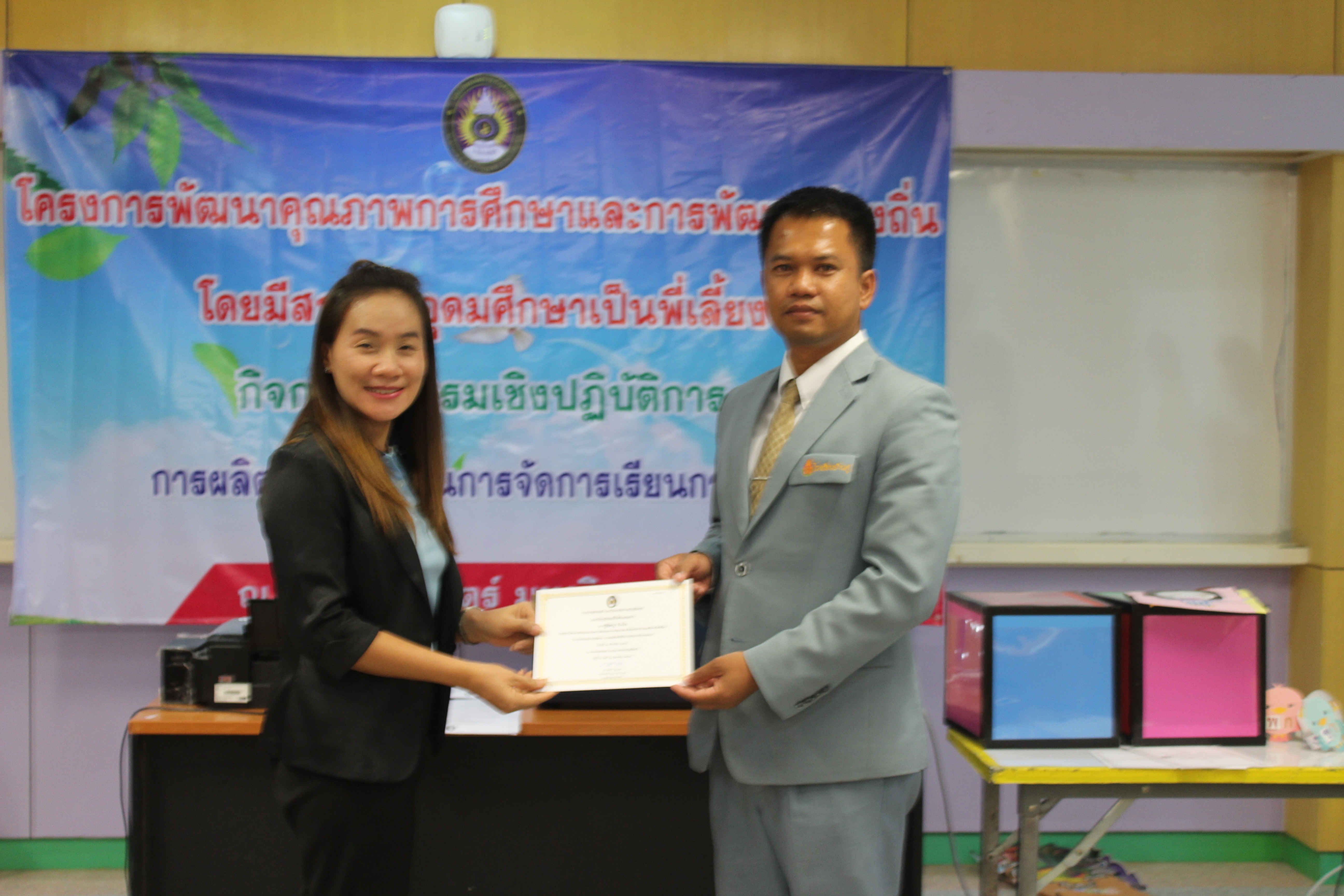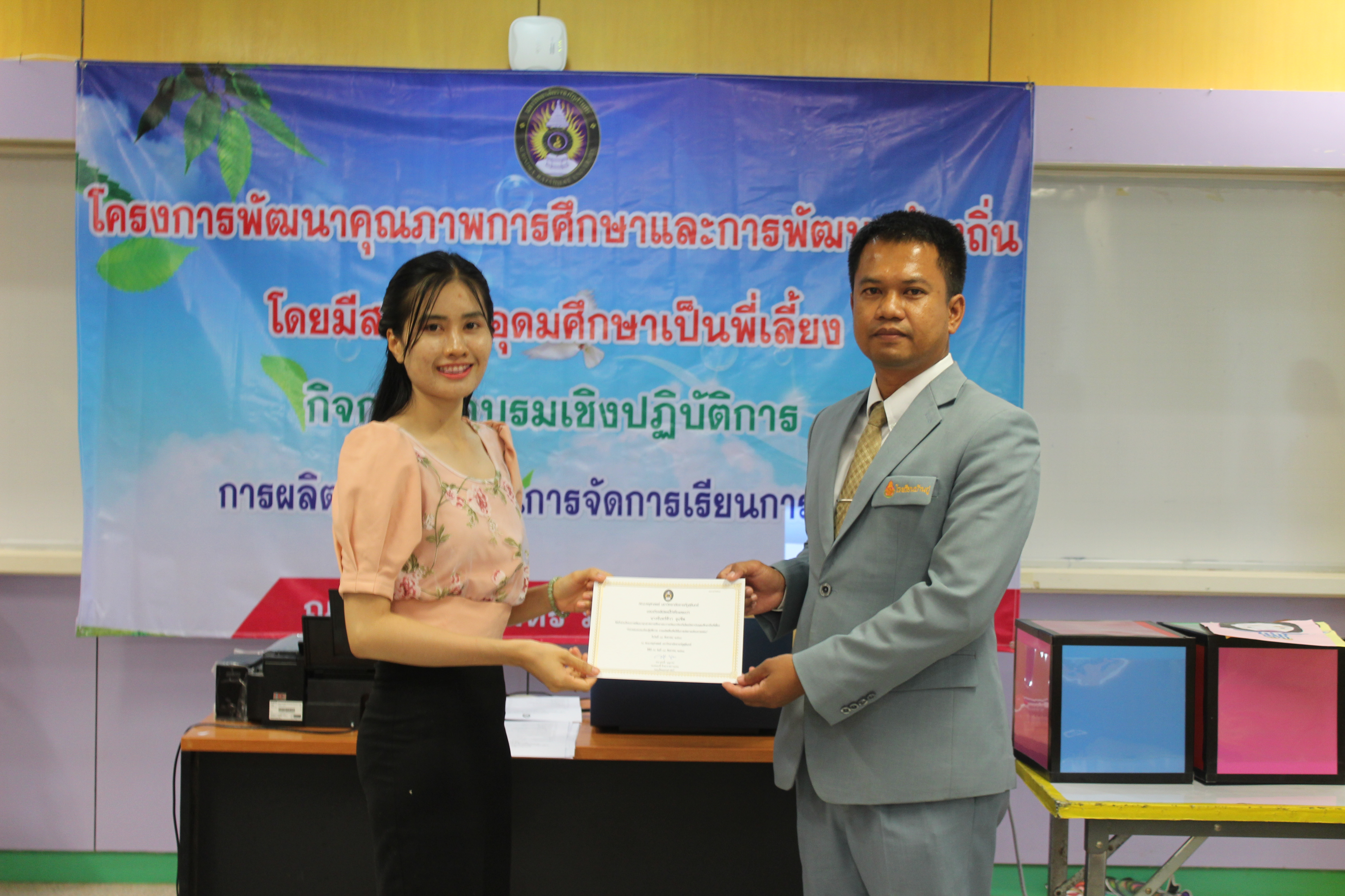 4. เพื่อให้ครูนำความรู้ที่ได้จากการอบรมปฏิบัติการไปประยุกต์ใช้สื่อในการจัดการเรียนการสอนในชั้นเรียนและถ่ายทอดความรู้สู่นักเรียนและบุคลากรทางการศึกษาต่อไป