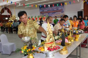 ข่าวทั่วไป งานสืบสานประเพณีสงกรานต์และวันผู้สูงอายุ มหาวิทยาลัยราชภัฏสุรินทร์ ประจำปี 2562 ผู้เขียน คณะครุศาสตร์ 10 เมษายน, 2019 ผู้เขียน คณะครุศาสตร์ 10 เมษายน, 2019 561 วันที่ 10 เมษายน 2562 ผู้ช่วยศาสตราจารย์ ดร.อุไร จันทมัตตุการ คณบดีคณะครุศาสตร์ นำบุคลากรเข้าร่วมงานสืบสานประเพณ๊สงกรานต์และวันผู้สูงอายุ มหาวิทยาลัยราชภัฏสุรินทร์ ประจำปี 2562 โดยมีการสรงน้ำพระ รดน้ำดำหัวและขอพรจากผู้บริหารและผู้สูงอายุ นอกจากนี้คณะครุศาสตร์และโรงเรียนสาธิตฯ ได้เข้าร่วมกิจกรรมการแข่งขันตำส้มตำโบราณ ก่อเจดีย์ทรายฯลฯ ซึ่งกิจกรรมเหล่านี้ทำให้บุคลากรคณะครุศาสตร์ เกิดความรัก ความสามัคคีและได้สืบสานประเพณีสงกรานต์ของไทยให้คงอยู่สืบไป 0 ก่อนหน้า ประชาสัมพันธ์กองทุนการออมแห่งชาติ (กอช.) ถัดไป ประชาสัมพันธ์ให้บุคลากรติดต่อขอรับผลตรวจสุขภาพประจำปี 2562 ข่าวอัพเดท คณะครุศา... 16 ธันวาคม, 2025 แบบประเม... 15 พฤศจิกายน, 2025 บรรยากาศ... 15 พฤศจิกายน, 2025 ส่งท้ายป... 9 มกราคม, 2025 ขอเชิญร่... 6 มกราคม, 2025 ทรงพระเจ... 8 ตุลาคม, 2024 แจ้งผลกา... 19 กรกฎาคม, 2024 ขอเชิญ ค... 5 กรกฎาคม, 2024 ประกาศปิ... 5 กรกฎาคม, 2024