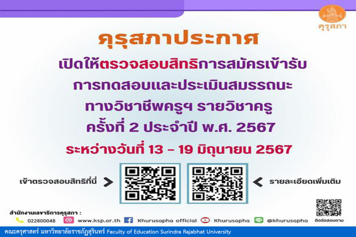 ข่าวทั่วไปข่าวสารและความเคลื่อนไหว คุรุสภาเปิดให้ตรวจสอบสิทธิการสมัครเข้ารับการทดสอบและ ประเมินสมรรถนะทางวิชาชีพครูฯ รายวิชาครู ระบบอิเล็กทรอนิกส์ ครั้งที่ 2 ประจำปี พ.ศ. 2567 ผู้เขียน คณะครุศาสตร์ 13 มิถุนายน, 2024 ผู้เขียน คณะครุศาสตร์ 13 มิถุนายน, 2024 1.8K คุรุสภาเปิดให้ตรวจสอบสิทธิการสมัครเข้ารับการทดสอบและ ประเมินสมรรถนะทางวิชาชีพครูฯ รายวิชาครู ระบบอิเล็กทรอนิกส์ ครั้งที่ 2 ประจำปี พ.ศ. 2567 ระหว่างวันที่ 13 – 19 มิถุนายน 2567 ผ่านเว็บไซต์ https://ksp67-2.thaijobjob.com คู่มือตรวจสอบสิทธิและปรับปรุงข้อมูล สำหรับผู้สมัครเข้ารับ การทดสอบและประเมินสมรรถนะทางวิชาชีพครู ครั้งที่ 2 ประจำปี พ.ศ. 2567 https://www.ksp.or.th/…/2024/06/annul-in-Thai-2-2567.pdf สำหรับการสมัครเข้ารับการทดสอบฯ ครั้งที่ 2 ประจำปี พ.ศ.2567 จะเปิดการรับสมัครระหว่างวันที่ 28 มิถุนายน ตั้งแต่เวลา 00.30 น. – 6 กรกฎาคม 2567 สิ้นสุดเวลา 16.30 น. ผ่านเว็บไซต์ https://ksp67-2.thaijobjob.com ซึ่งจะแจ้งประกาศให้ทราบอย่างเป็นทางการ ต่อไป ดูรายละเอียดเพิ่มเติมที่ https://www.ksp.or.th/2024/06/12/50987/ ก่อนหน้า โครงการการพัฒนาครูคืนถิ่นให้มีสมรรถนะการจัดการเรียนรู้สู่การยกระดับคุณภาพการศึกษาสำหรับครูในปีบรรจุ พ.ศ. 2565 (รุ่นที่ 7) รอบปีที่ 2 ถัดไป ประกาศรับสมัครนักศึกษาเพื่อรับทุนการศึกษาในโครงการกองทุนการศึกษา ฯ คณะครุศาสตร์ ข่าวอัพเดท คณะครุศา... 6 ตุลาคม, 2025 มอบทุนกา... 21 สิงหาคม, 2025 สำนักงาน... 13 สิงหาคม, 2025 ทรงพระเจ... 8 สิงหาคม, 2025 เตรียมเป... 18 กรกฎาคม, 2025 ทรงพระเจ... 13 กรกฎาคม, 2025 การตรวจป... 10 กรกฎาคม, 2025 ประชุมกา... 10 กรกฎาคม, 2025 หลักสูตร... 9 กรกฎาคม, 2025 การประชุ... 9 กรกฎาคม, 2025