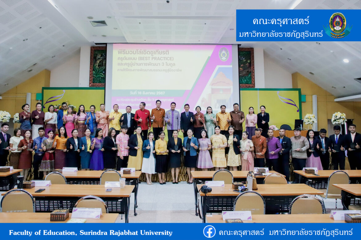 การพัฒนาสมรรถนะครูสู่มืออาชีพข่าวการอบรม พิธีมอบโล่เชิดชูเกียรติครูต้นแบบ (BEST PRACTICE) และครูผู้ผ่านการพัฒนา 3 โมดูล ภายใต้โครงการพัฒนาสมรรถนะครูสู่มืออาชีพ ผู้เขียน คณะครุศาสตร์ 16 สิงหาคม, 2024 ผู้เขียน คณะครุศาสตร์ 16 สิงหาคม, 2024 1.6K วันที่ 16 สิงหาคม พ.ศ. 2567 เวลา 10.00 น. รองศาสตราจารย์ ดร.ฉลอง สุขทอง อธิการบดีมหาวิทยาลัยราชภัฏสุรินทร์ เป็นประธานในพิธีมอบโล่เชิดชูเกียรติครูต้นแบบ (BEST PRACTICE) และครูผู้ผ่านการพัฒนา 3 โมดูล ภายใต้โครงการพัฒนาสมรรถนะครูสู่มืออาชีพ โดยมีครูที่ได้รับการพิจารณาจากคณะกรรมการ เป็นครูต้นแบบ (BEST PRACTICE) จำนวน 10 ท่าน และครูผู้ผ่านการพัฒนา 3 โมดูล จำนวน 20 ท่าน เข้ารับพิธีมอบโล่เชิดชูเกียรติ รวมทั้งผู้อำนวยการโรงเรียน และศึกษานิเทศก์เข้าร่วมเป็นเกียรติในครั้งนี้ ณ ห้องประชุมช้างเผือก ชั้น 3 อาคาร 41 โดยมีวัตถุประสงค์โครงการ ดังนี้ 1.พัฒนาและปลูกฝังจิตวิญญาณความเป็นครูให้มีความรักชาติ ศาสน์ กษัตริย์ 2.นิเทศ ติดตาม ให้คำปรึกษาแนะนำ ให้ผู้เข้ารับการพัฒนาจัดกิจกรรมการเรียนรู้เชิงรุก (Active Learning) ได้อย่างมีประสิทธิภาพ 3.ให้มีการให้คำปรึกษา แนะนำผู้เข้ารับการพัฒนาเกี่ยวกับการพัฒนาตนเองเพื่อให้เป็นไปตามข้อตกลงในการพัฒนางาน (Performance Agreement:PA) 4.ให้มีการแลกเปลี่ยนเรียนรู้ตามแนวทางชุมชนแห่งการเรียนรู้ทางวิชาชีพ (Profesional Learning Community : PLC) และสอดคล้องกับสมรรถนะวิชาชีพ 5.ให้ผู้เข้ารับการพัฒนาได้จัดการเรียนรู้ให้นักเรียนมีคุณลักษณะอันพึงประสงค์และมีสมรรถนะสำคัญของผู้เรียนตามที่หลักสูตรกำหนด ภาพกิจกรรมเพิ่มเติม https://photos.app.goo.gl/b3uJq4RncjmHLR9Y6 0 ก่อนหน้า การพัฒนาทักษะอาชีพทางเลือกและสร้างอาชีพที่ 2 เพื่อสร้างรายได้สำหรับนักศึกษาครุศาสตร์บัณฑิตชั้นปีที่ 1-3 มหาวิทยาลัยราชภัฏสุรินทร์ ถัดไป พิธีวางพานพุ่มราชสักการะเพื่อน้อมรำลึกในมหากรุณาธิคุณของพระบาทสมเด็จพระจอมเกล้าเจ้าอยู่หัว “พระบิดาแห่งวิทยาศาสตร์ไทย” ในงานสัปดาห์วิทยาศาสตร์ ประจำปี 2567 ข่าวอัพเดท พิธีมอบเ... 23 มกราคม, 2026 การส่งเส... 18 พฤษภาคม, 2025 อบรมการพ... 15 พฤษภาคม, 2025 การฝึกอบ... 30 เมษายน, 2025 การประชุ... 30 มีนาคม, 2025 สมาคมศิษ... 18 มีนาคม, 2025 อบรมเชิง... 7 มีนาคม, 2025 โครงการพ... 3 มีนาคม, 2025 การอบรมเ... 24 กุมภาพันธ์, 2025 อบรมเชิง... 24 กุมภาพันธ์, 2025