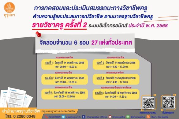 ข่าวจากฝ่ายฝึกประสบการณ์วิชาชีพครูข่าวสารและความเคลื่อนไหวสนามสอบใบประกอบวิชาชีพครู แนวปฏิบัติสำหรับผู้มีสิทธิเข้ารับการทดสอบและประเมินสมรรถนะทางวิชาชีพครู ด้านความรู้และประสบการณ์วิชาชีพ ตามมาตรฐานวิชาชีพครู รายวิชาครู ครั้งที่ 2 ระบบอิเล็กทรอนิกส์ ประจำปี พ.ศ. 2568 ผู้เขียน คณะครุศาสตร์ 15 พฤศจิกายน, 2025 ผู้เขียน คณะครุศาสตร์ 15 พฤศจิกายน, 2025 14 ก่อนหน้า แบบประเมินประเมินความพึงพอใจ (Satisfaction Survey) การทดสอบและประเมินสมรรถนะทางวิชาชีพครู ครั้งที่ 2 ระบบอิเล็กทรอนิกส์ ประจำปี พ.ศ. 2568 ข่าวอัพเดท แบบประเม... 15 พฤศจิกายน, 2025 บรรยากาศ... 15 พฤศจิกายน, 2025 สนามสอบใ... 15 พฤศจิกายน, 2025 คณะครุศา... 6 ตุลาคม, 2025 มอบทุนกา... 21 สิงหาคม, 2025 สำนักงาน... 13 สิงหาคม, 2025 ทรงพระเจ... 8 สิงหาคม, 2025 เตรียมเป... 18 กรกฎาคม, 2025 ทรงพระเจ... 13 กรกฎาคม, 2025 การตรวจป... 10 กรกฎาคม, 2025
